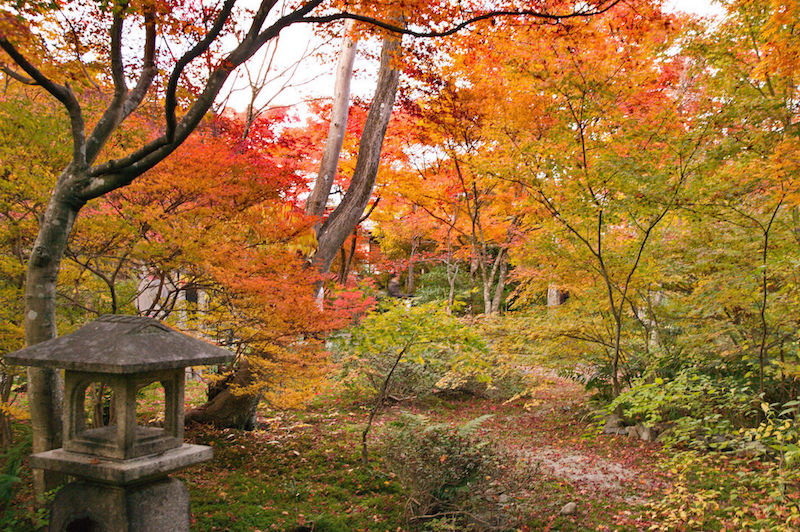 嵯峨野擁有絢麗紅葉的寶筐院,大型、中型攝影器材一律所有範圍禁止拍攝,普通觀光可拍照。