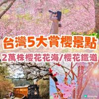 2026台灣櫻花季|台灣賞櫻景點|台北賞櫻花|春天正是賞櫻的好季節,而台灣櫻花花期一般為2至3月,而且可睇的品種更多不勝數!今次為大家推薦4大台北賞櫻景點,包括台北陽明山、中正紀念堂等,還有內湖樂活夜櫻季!大家要把握台灣櫻花花期,欣賞春天櫻花盛開的粉紅花海!