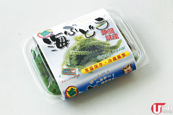 「海葡萄」是沖繩名物,口感爽脆,蘊含海水鮮味及清新的海藻味道。海葡萄營養價值豐富,而且卡路里極低。那霸機場內有賣新鮮海葡萄,可以買回去手信。
