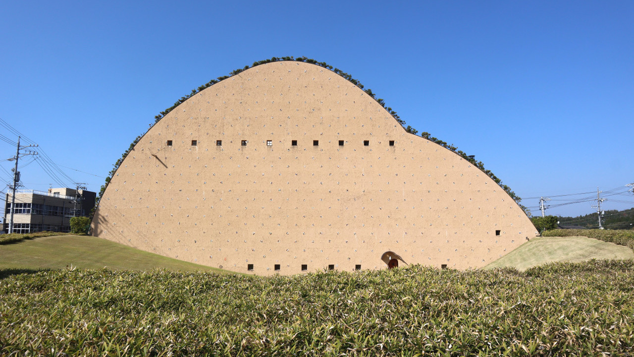 似足蠟筆小新靴型面的博物館,乃日本建築界鬼才──藤森照信傑作,原概念是以磁磚原料的「黏土山」,不規則的形狀,走近會發現馬賽克磁磚拼貼。