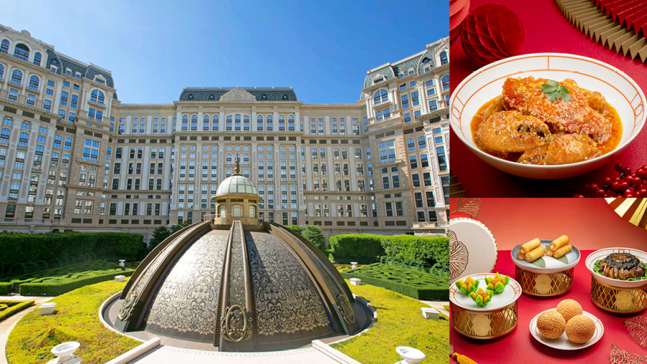 澳門上葡京入面多間高級中菜廳於新春期間亦會推出多款特式賀年菜及糕點。首推設計融合舊日情懷與現代創意嘅「茶樓」,佢嘅龍騰獻瑞禮盒以20年陳皮普洱年糕及荔枝紅茶禮盒,無論外觀及味道都贏盡口碑;而宮廷園林主題的「御花園」,則以燕窩玫瑰棗茸年糕及海螺柴魚臘味蘿蔔糕迎新歲,既矜貴又別具心思,買返香港用作送給親朋好友嘅手信,好食又得體。