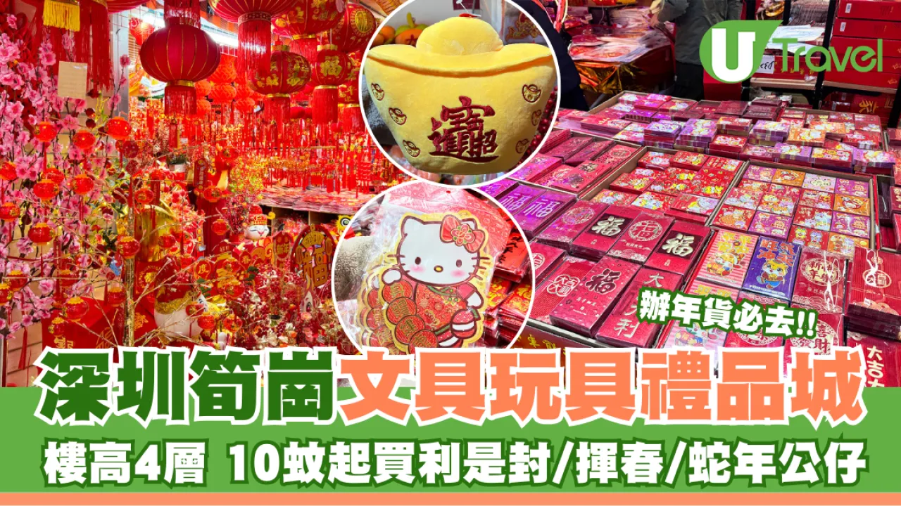 【深圳辦年貨|深圳好去處|筍崗文具城|深圳文具城|深圳玩具城】農曆新年就快到,不少港人都會考慮北上到深圳行花市,又或是到深圳辦年貨,而其中一個人氣辦年貨地點推介──筍崗文具玩具禮品城,鄰近羅湖口岸,位於7號線筍崗站旁,這個文具玩具批發中心樓高4層,新春前設有「深圳年貨一條街」,有多款新春擺設和裝飾,也有大量利是封、揮春、元寶等選擇,新年物品十分集中,有興趣到深圳辦年貨的朋友就可以去掃貨啦!