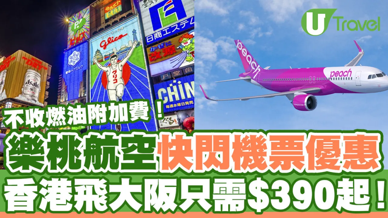 Peach樂桃航空突然推出情人節節機票優惠,香港飛大阪航線只需$390起,而且繼續不收燃油附加費,想去大阪旅遊的朋友就可以Mark定時間搶機票啦!