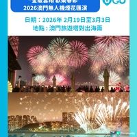 除了香港年初一有煙花睇,澳門也有新年煙花表演。2025年澳門的煙花匯演就以「靈蛇獻瑞」為主題,於澳門旅遊塔對出海面舉行3場煙花匯演,並設有6個觀賞點,觀賞點附近更設置音響設備,以視聽的雙重享受營造出更加熱烈的慶祝氛圍。大家亦可登上澳門塔,欣賞璀璨煙花的同時,還可以俯瞰澳門的夜景!