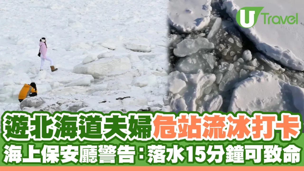 每年2月至3月,北海道網走市迎來流冰(即日文浮冰)最佳觀賞季,不少遊客專誠到當地坐破冰船欣賞壯觀的流冰景象,但有部份遊客罔顧安危,為拍照而踏上流冰。日前一對遊客夫婦為打卡而在流冰上逗留約10分鐘,引起當地傳媒報導,網走海上保安廳警告以目前海上的溫度,如果不慎墮海,15分鐘足以致命!