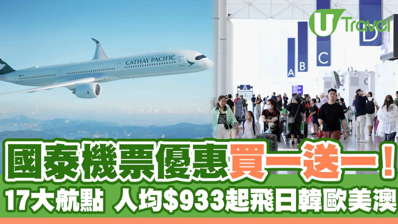 又有機票買一送一優惠喇!今次繼續有國泰航空機票優惠,即日起至4月22日透過指定旅遊平台預訂,無論飛日韓東南亞,抑或是歐美澳,一樣可享買一送一優惠,人均低至$933港元,仲包2件行李。出發日期為今年12月31日前,重有大半年時間,一於諗定去邊玩!