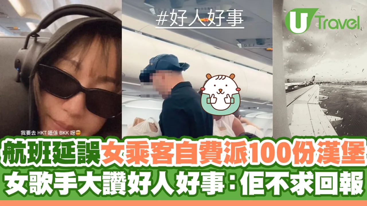 歌手兼健身教練鄧穎芝(Vangie)日前在港乘搭從香港飛往布吉的航班,怎料遇上航班延誤,飛機在曼谷蘇凡納布機場(BKK)降落,兼等候了8小時。一眾旅客滯留當地,有乘客更自己買了合共100份漢堡及50份薯條派給其他乘客,Vangie大讚是好人好事!