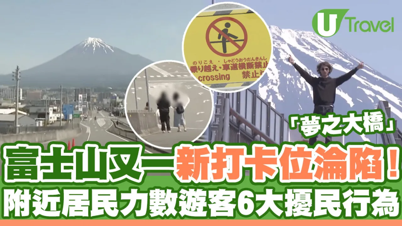 富士山眾多打卡位一向是遊客的必到之處,亦都令到當地交通變得擁擠,人群雜聲經常騷擾附近居民,造成滋擾。自LAWSON便利店河口湖站前店與富士河口湖町公所前店相繼作出興建欄板等措施後,另一打卡位近日也在網絡上瘋傳,許多遊客轉戰「夢之大橋」打卡,更有衝出馬路拍照場面,驚心動魄。當局已開始勸喻大家儘量不要阻礙到附近居民正常生活了!