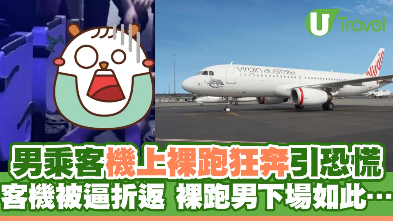 維珍澳洲航空(Virgin Australia Airlines)日前一班客機在起飛約1.5小時後被逼折返,原因竟是有男乘客在機上裸跑。