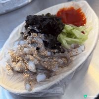 母女麻藥紫菜包飯的紫菜包飯號稱會吃上癮,有如「麻藥」一樣。餐廳的紫菜包飯包著紅蘿蔔、菠菜、醃蘿蔔等材料,配上獨特的Wasabi蘸醬,讓人回味無窮!母女麻藥紫菜包飯同樣曾登上《Running Man》,所以也是廣藏市場的必食之選。