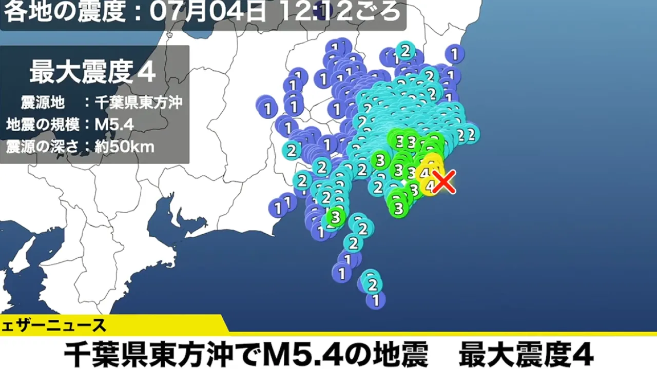今日中午12時12分(香港時間上午11時12分),日本千葉縣東邊外海發生規模5.4級地震,震源深度50公里,最大震度達4級。日本新聞報道東京、神奈川縣東部、靜岡縣伊豆居民都感到強烈震感。點擊圖片放大+6+5 地震造成東京23區有感,多地觀測到強烈搖晃。所幸本次地震未引發海嘯。受地震影響,東北新幹線、上越新幹線及北陸新幹線一度停駛,現已恢復運行。氣象廳表示,雖地震搖晃明顯,但無需擔心海嘯威脅。點擊圖片放大+7+6 來源:NHK、weathernews.jp▶️立即下載U Lifestyle App:https://bit.ly/47MZ5J2同場加映:【快閃旅行團】最新影片