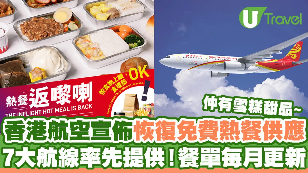 好消息!香港航空 (Hong Kong Airlines) 今日宣佈,由7月8日起將會恢復免費熱食餐點及甜品服務,即表示大家搭飛機不用只吃港航招牌雞尾包,熱食服務會在指定航線供應,大家下次乘搭港航就不怕在機上肚餓啦!
