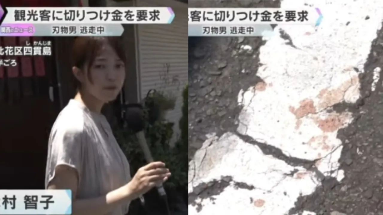 當地警方描述,劫匪身高約170公分,案發時身穿白色T恤,作案後迅速逃離現場。案發地點距離阪神千鳥橋站西南方向大約300米,屬於住宅區域,新聞片段可見地上仍留有血漬。