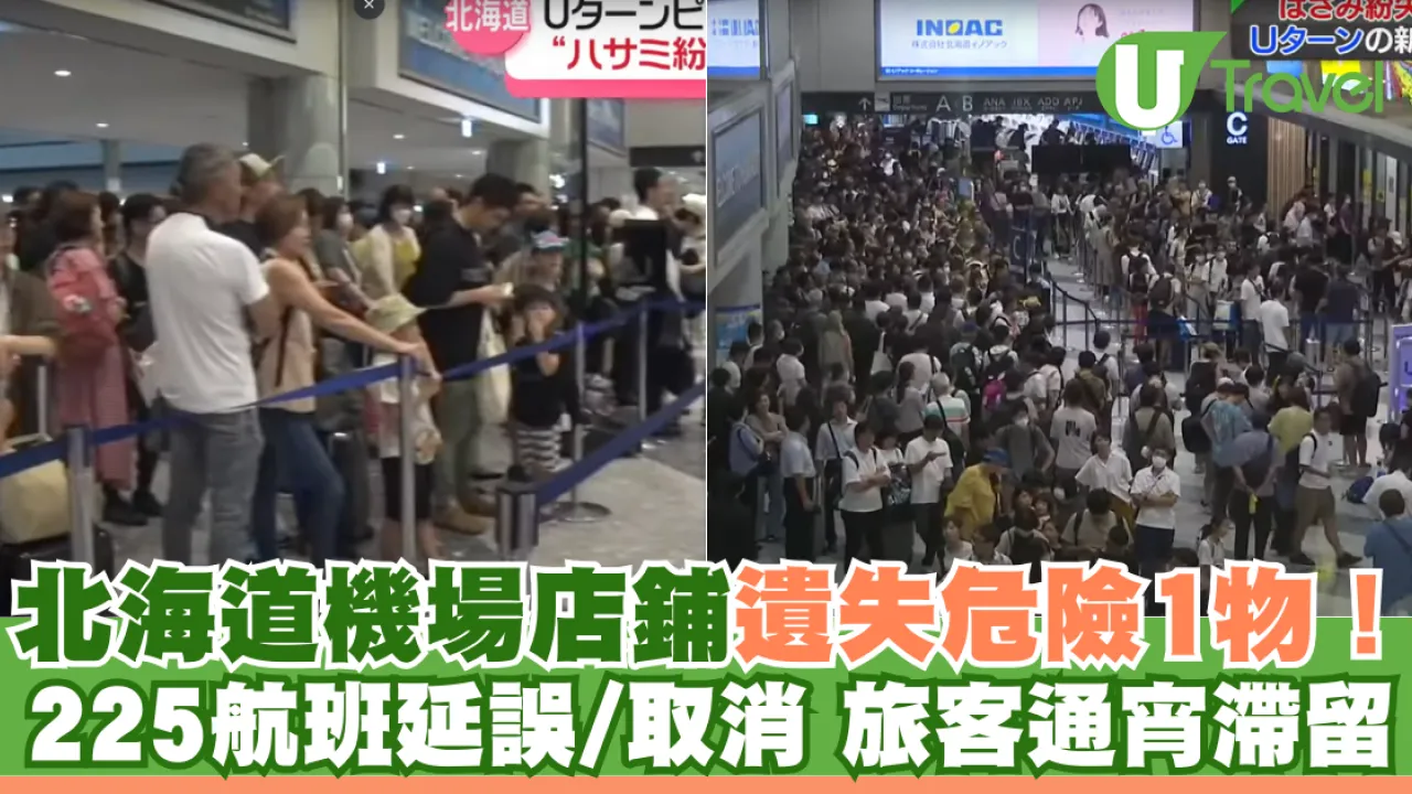 在上星期六(17號)日本北海道新千歲機場禁區內候機室商店在當天上午九點30分左右遺失了一把剪刀,機場方面擔心剪刀是被偷走並有飛行安全隱憂,所以機埸公司與國土交通省商議後從10時20分左右起暫停安全檢查,並要求所有已經完成安檢的旅客回到安檢區重新進行安檢,在中午12點20分左右重啟安全檢查作業,超過225班航班因此要延誤或取消。