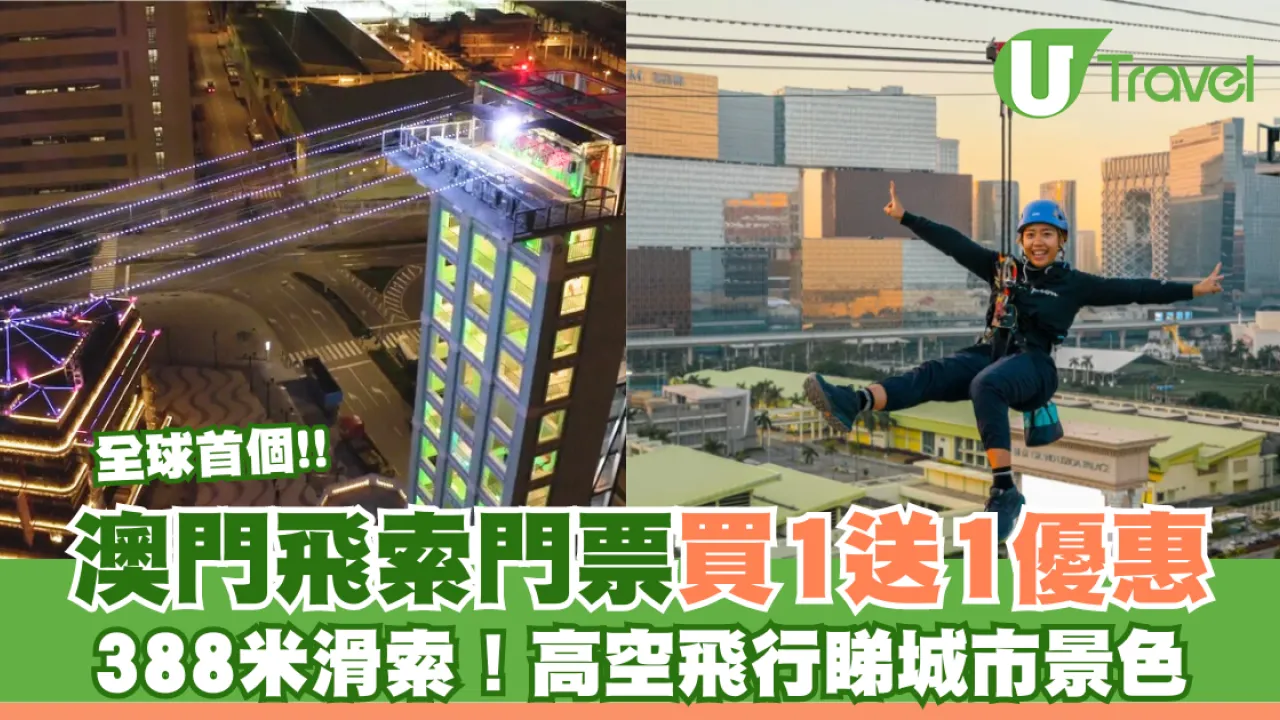 生活得太重複太苦悶?不妨為自己帶來一場冒險,到澳門玩玩「澳門飛索」!比起笨豬跳,飛索絕對屬入門級,刺激震撼感卻同樣巨大,配合音效和幻光效果,感官刺激更升級。8 月 21 號晚上 9 點,Klook 更會快閃推出門票買一送一,人均HK$194就能得到門票、飛行影片和照片包,各位記得準時開搶!數量有限,售完即止。