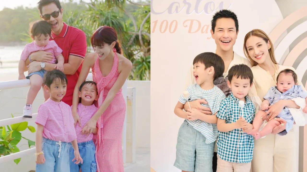 鄭嘉穎與陳凱琳(Grace)早前首度一家五口去旅行,順道慶祝鄭嘉穎55歲生日。只見3個囝囝超高顏值,雖然膚色大不同,但都似足爸爸,網民搞笑形容「一屋鄭嘉穎」!