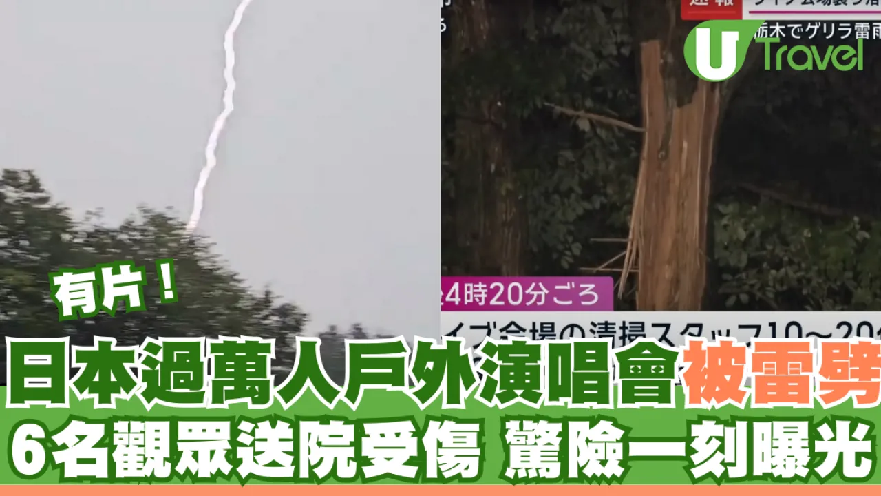 【演唱會意外】繼日前韓國發生演唱會煙花事故後,日本亦發生演唱會意外,不過這次是天災引致,在日本栃木縣一場過萬名觀眾的演唱會被雷擊中,有6人更要送院,甚為驚險。
