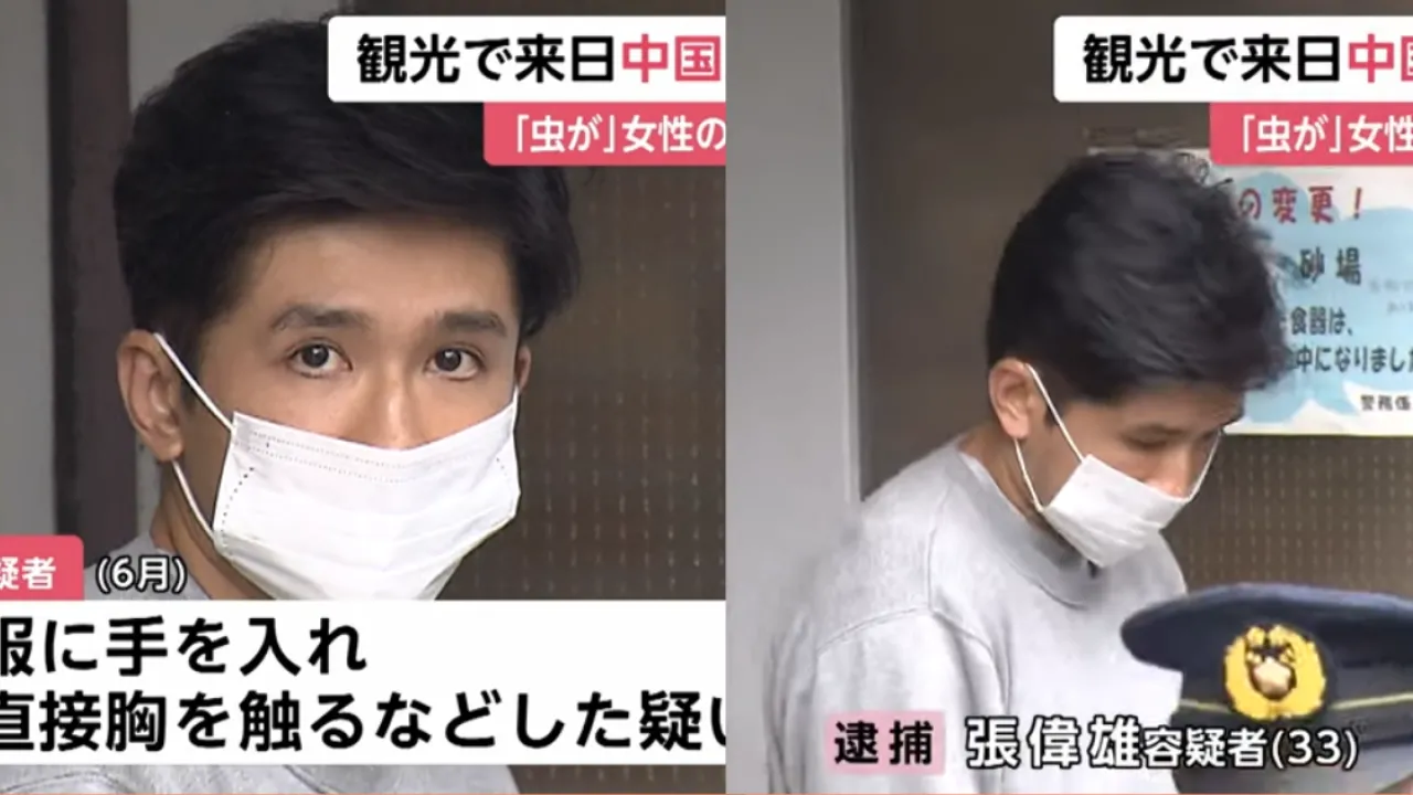 據報導,張姓男子在用不流利的日語告訴該女子「妳身上有蟲」後,趁機將手伸入她的衣物內,觸摸猥褻了她的胸部。男子在犯罪後的隔天便返回中國。