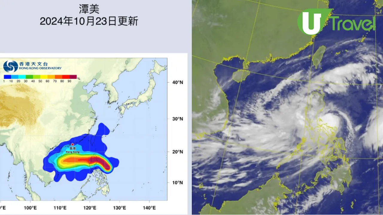 (10月24日12點更新) 根據天文台現時最新預測,熱帶氣旋「潭美」會在今晚(24日)至明早(25日)進入香港800公里範圍內,預料天文台會於今晚10點至明早4點之間發出一號戒備信號,另外潭美可能會逐漸移向海南島一帶,而東北季候風會同時影響華南,星期五及週末期間華南沿岸會多雲有幾陣驟雨。天文台表示會視乎潭美的移動方向和強度變化評估是否需要於星期五稍後至星期六初時改發三號強風信號。大家記得留意天文台最新颱風消息!