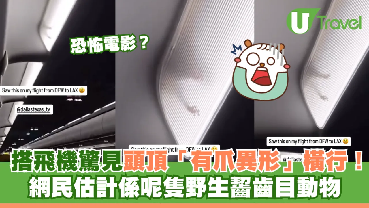 網民一向十分關注飛機上的衛生情況,在一架德州達拉斯飛往加州洛杉磯的航班上,乘客們驚恐地發現一隻「超級老鼠」在頭頂的行李箱及燈箱上方位置奔跑。這一驚人的場面被一名乘客拍攝下來,並在社交媒體上迅速瘋傳,影片在Instagram上的觀看次數已達約200萬次!