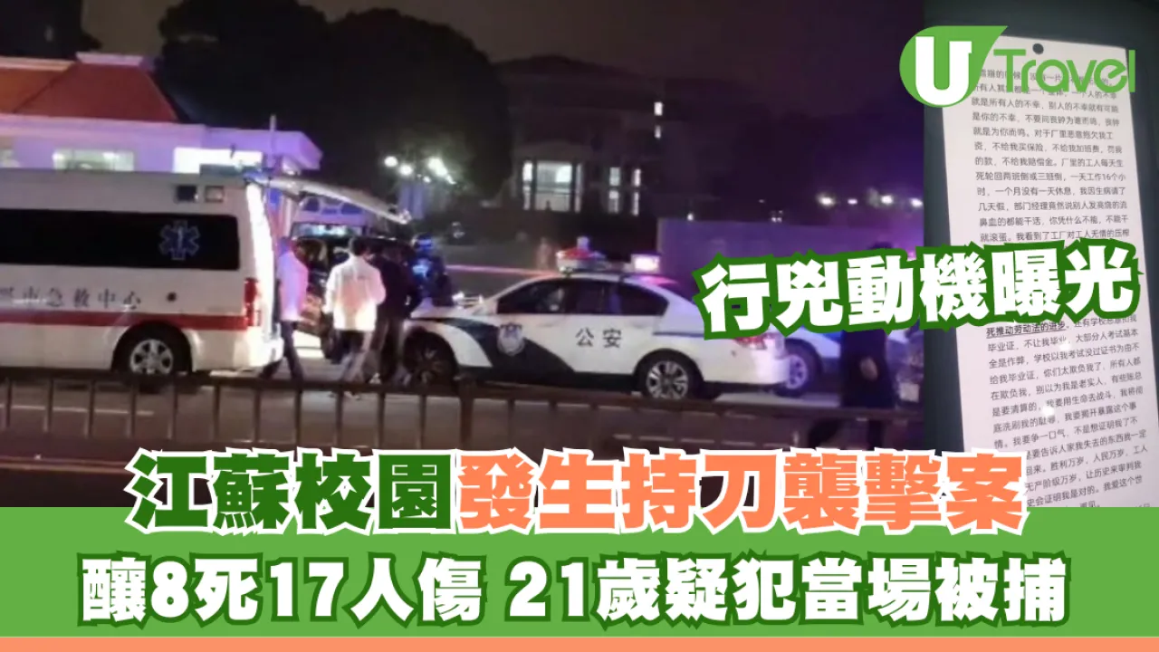 江蘇宜興市無錫工藝職業技術學院11月16日發生持刀傷人案,案中造成8人死亡,17人受傷。