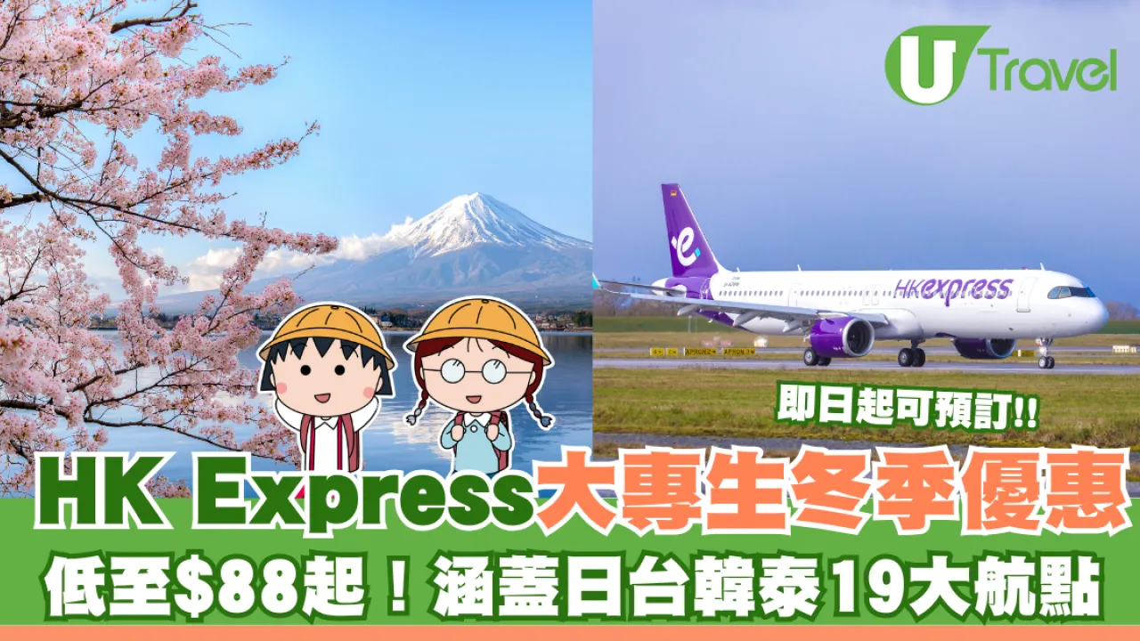 這次HK Express的限時優惠特別為指定大專院校學生而設,只要有至少一位旅客符合大專院校學生資格,並預訂兩人或以上的機票,就可享受優惠。相關優惠涵蓋多達19個精彩航點,「經濟飛」(包括一件隨身物品及一件登機行李)單程機票低至港幣88*/人,大家記得快點搶購,去旅行玩個夠!