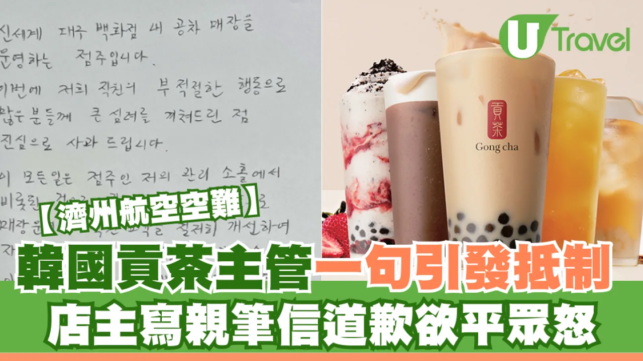 12月29號發生的濟州航空難造成179人罹難,南韓全國都處於悲痛之中,不過台灣茶飲品牌貢茶,於南韓的一間加盟店店長在全國哀悼之際,被指傳給員工的訊息「無人性」,更有人發起抵制貢茶,令總公司要出面道歉。