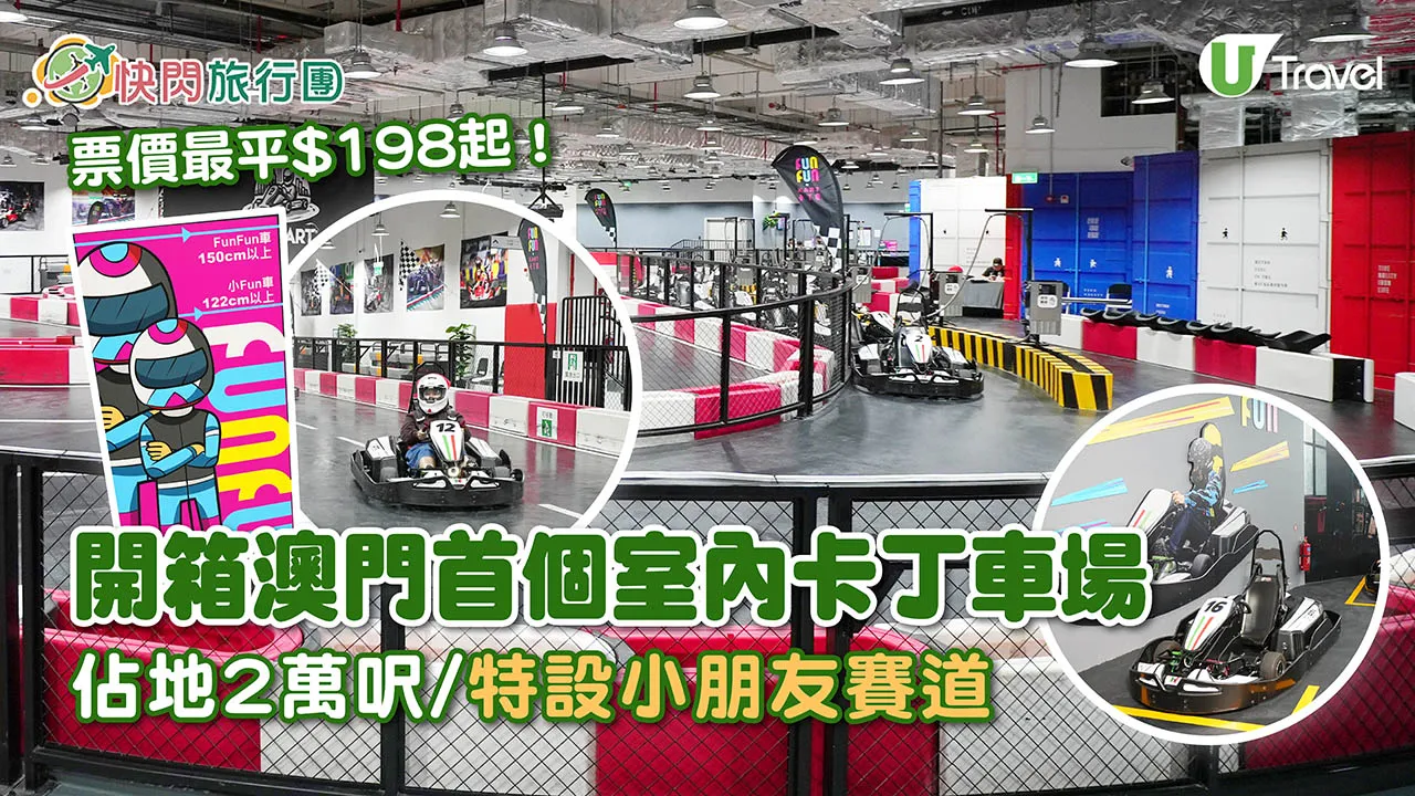 澳門首個室內電動卡丁車場已經進駐「FUN FUN KART」澳門葡京人酒店,賽道佔地超過2萬尺,可容納超過50人,非常適合團體活動和聚會。場內的賽道分為大人及小朋友賽道,各限速為60km/h及45km/h,無論大人定小孩一樣可以體驗卡丁車競速的刺激!車場所採用的卡丁車全部為意大利品牌OTL Superleggero,性能和安全都非常好。場內設有遠程操控系統,確保當發生碰撞時,所有卡丁車都會立即停止,保障玩家的安全,另外現場提供的安全設備亦很齊全。除了賽道,場內還設有休息區和卡丁車主題的打卡區,大家在享受賽車樂趣之餘,也能放鬆身心。
