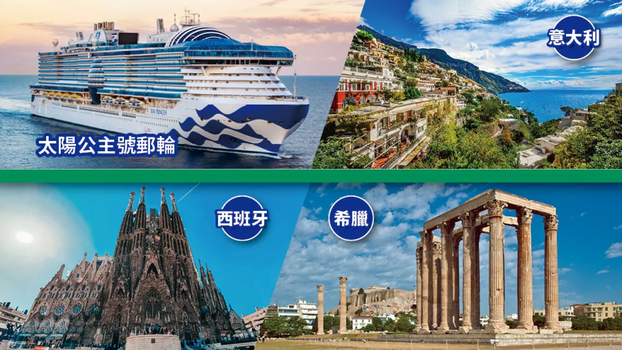 今次「太陽公主號」設計的3大航線,分別以西班牙、意大利及希臘為軸心,全程不設自費活動,並包含所有稅項及當地特色美食;亦無須額外收取旅行團服務費,一個價錢優遊全包,輕鬆出遊無需計較!即睇邊條航線最啱玩!