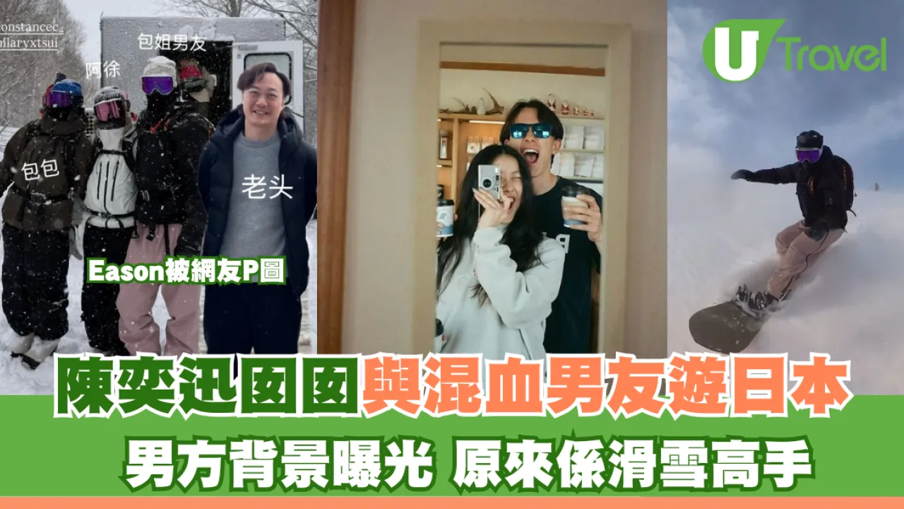 陳奕迅(Eason)早前與老婆徐濠縈及20歲女兒陳康堤(Constance)飛到北海道旅行,更到了二世古滑雪,被不少網友「野生捕獲」。有眼利網友更發現陳康堤的日本模特兒男友Shou Honda也有一同滑雪。