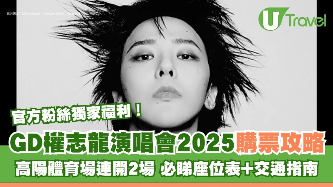 GD權志龍演唱會2025韓國|G-Dragon權志龍在2月25日全球發行全新專輯《Übermensch》,同時更宣佈將舉辦2025世界巡迴演唱會"G-DRAGON 2025 WORLD TOUR Übermensch" 與全球各地粉絲見面!首場將於3月29-30日登陸韓國高陽體育場,連開兩場!準備搶飛的粉絲敬請留意以下售票攻略。