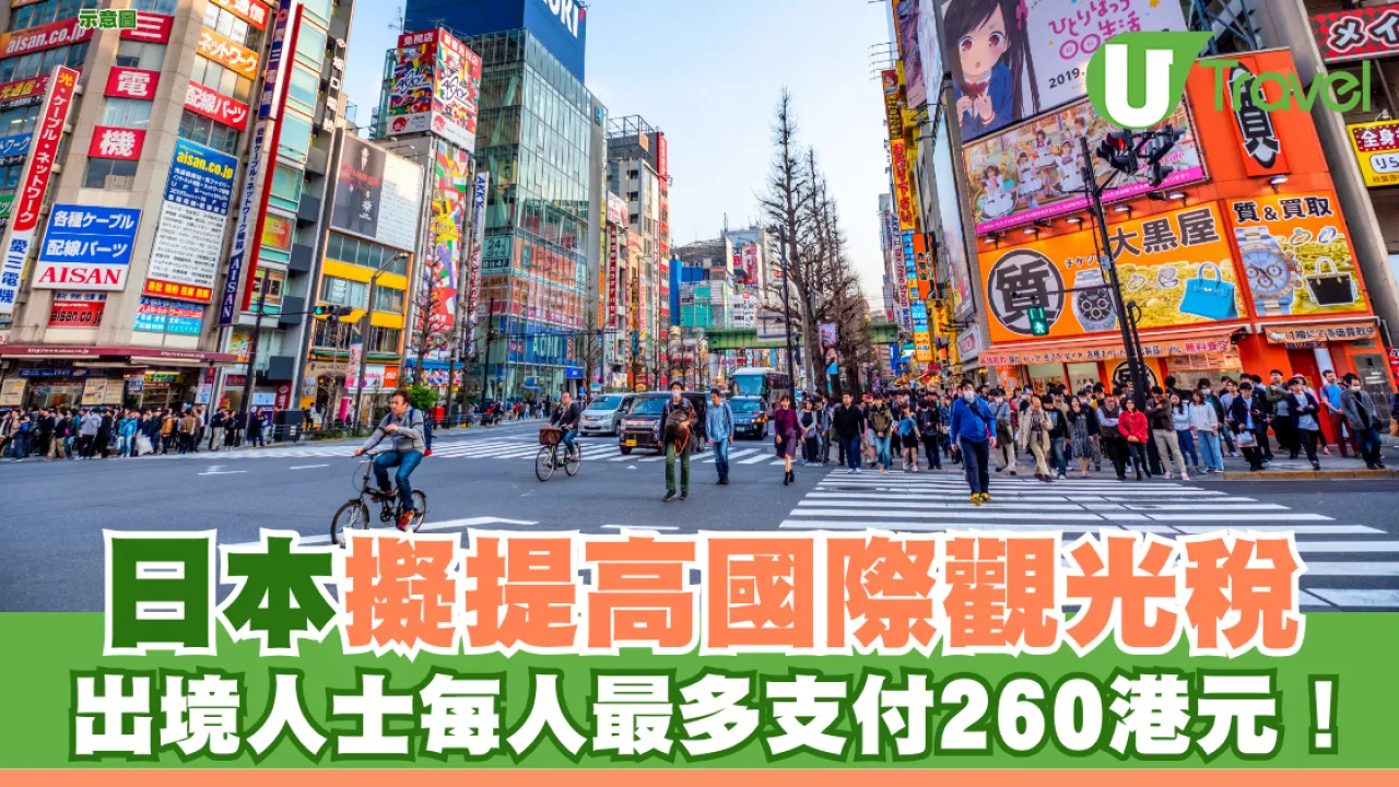 據《讀賣新聞》報導,2024年訪日的外國遊客約為3687萬人次,當局預計未來訪日外國人數仍將增加,預料2030年會有6000萬訪日遊客,愈來愈多的遊客為日本多地帶來「過度旅遊」(觀光公害)的問題,因此日本執政自民黨正研究上調國際觀光客稅(亦稱「出國稅」),由現時的1000日圓增至3000日圓(約155港元)或5000日圓(約260港元),加上香港近期宣佈提高的飛機乘客稅,相信屆時港人遊日的成本將會更高。