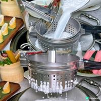 小火璽在2024年登上大眾點評必吃榜,受不少網民推薦。他們主打首創的鮮榨椰漿雞,椰漿由椰肉鮮榨,加上椰水形成奶白色的濃郁湯底,又香濃又清甜!除了可以吃嫩滑的雞肉,還可以點招牌的澳洲和牛黑毛牛胸肉和牛肉船,滿滿的牛肉脂肪好吃之餘還很適合打卡~而且小火璽採用中式古風設計,餐廳內有不少小橋、假山、流水、景觀池,讓大家能在古色古香的環境下享受美食。