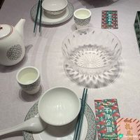 餐廳環境整體裝修風格偏中式且大氣,桌子設計寬敞,就餐環境舒適。多個細節貼心設計,如不同尺寸手套(還有標示「細路仔」的童用尺寸)、即時更換骨碟等,都體現出店家的用心。牆上陳列著連續5年獲得米芝蓮推介的榮譽墙,印證餐廳的實力。