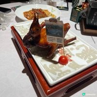 另一道獲網友盛讚的焦糖黑叉燒,被譽為「四大招牌之首」。叉燒外層包裹著一層焦糖般的甜醬,肉質軟嫩不柴,烤製恰到好處使其保持多汁口感。這道菜會配上特製的醃蘋果條,酸甜口味與叉燒融合。