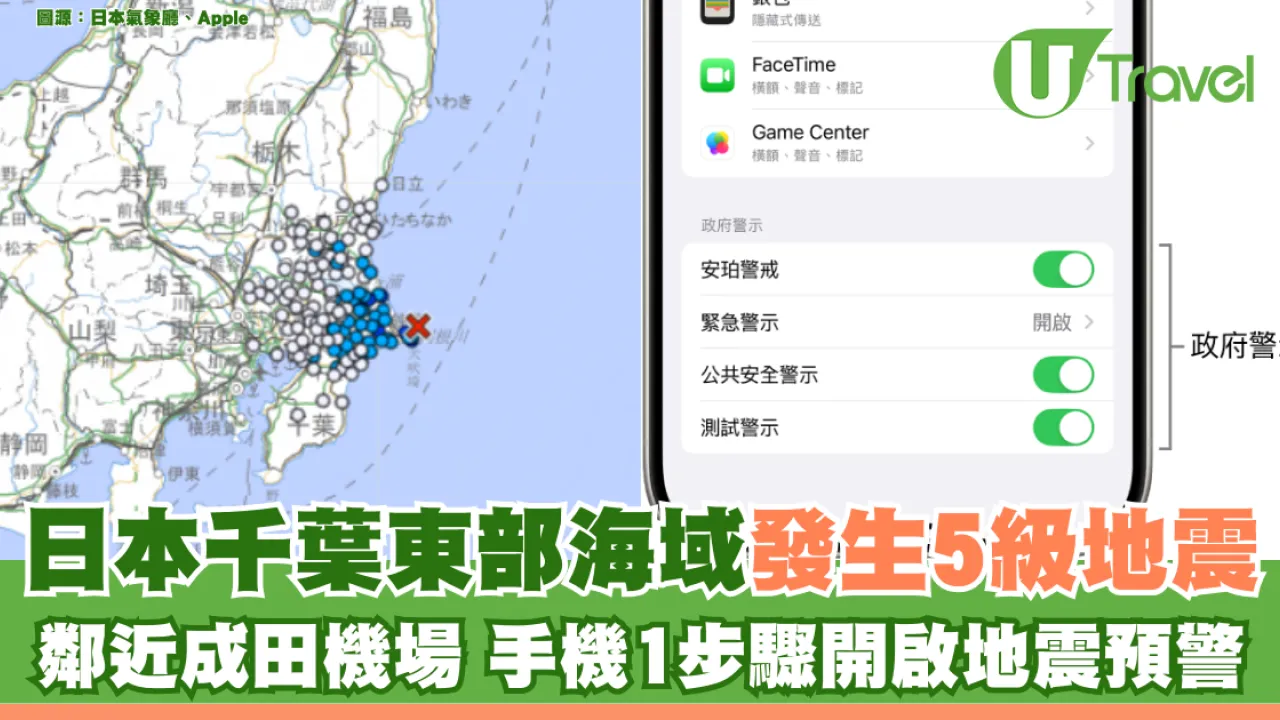 日本氣象廳報告指,日本千葉縣東面海域今日早上發生地震,東京都廣泛地區有震感。近期各地頻繁發生地震,外遊時大家最好開啟手機的「地震預警」功能,以確保收到最新警告,即看內文了解如何開啟手機「地震預警」!