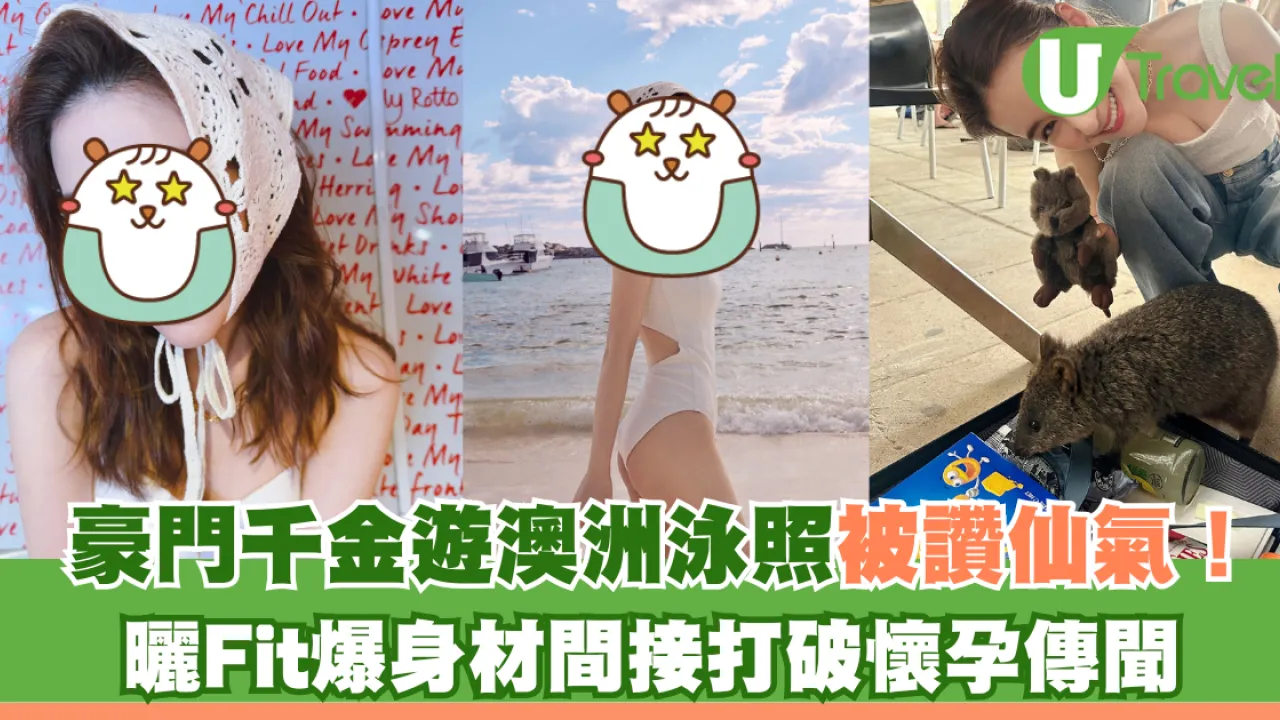 何超蓮近日去了度假天堂羅特尼斯島 (Rottnest Island) ,這裡是世界上最快樂的動物短尾矮袋鼠的家園,又擁有多個天然海灘,非常漂亮。超蓮更穿米白色one-piece泳衣,曬Fit爆身材,亦間接打破懷孕傳聞。她留言:「在去Rottnest Island的船上發現漂亮的打卡牆,看Quokka前小小臭美一下」。戴上勾織帽的她,輕曬事業線,獲讚性感又有仙氣。