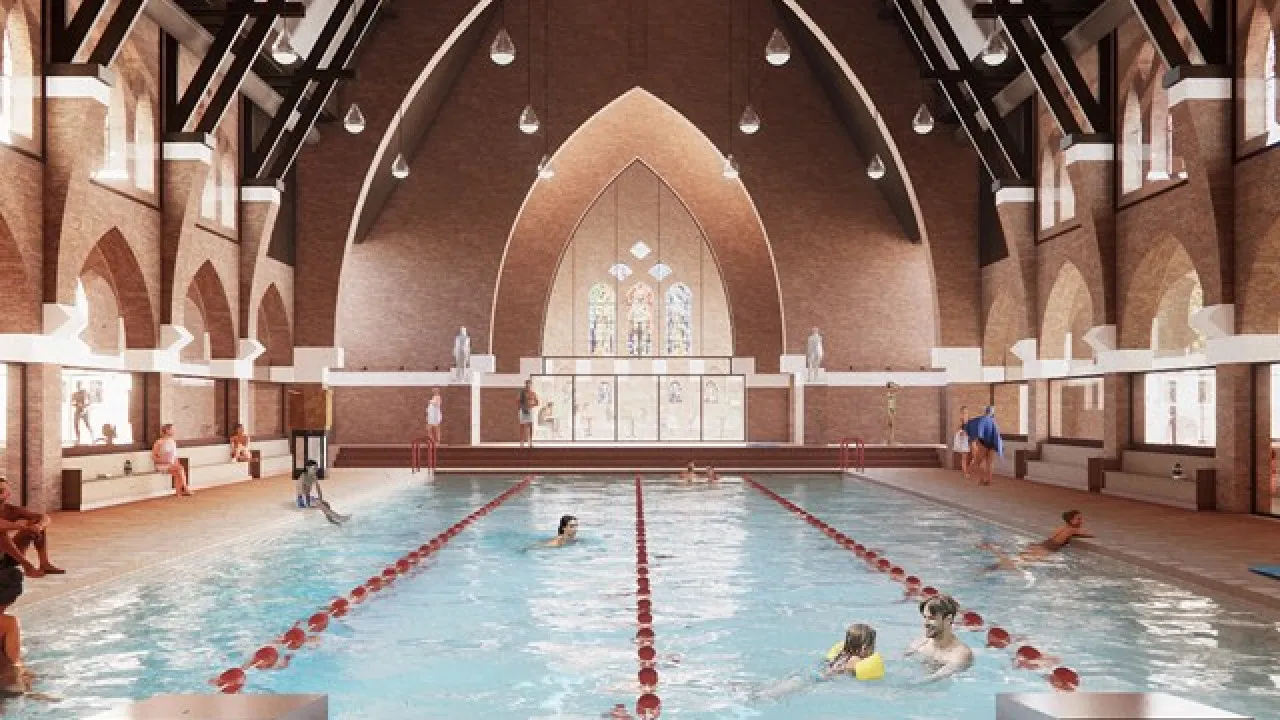 教堂莊嚴而神聖,但荷蘭海爾倫市聖方濟各教堂(Sint-Franciscus van Assisiëkerk)經歷百年洗禮,今年宣佈將會改建成公共泳池!而這個創意「聖水」(Holy Water)改造計畫由當地著名建築師事務所 MVRDV 與專注於歷史建築轉型的Zecc Architecten負責,令古跡更現代化。