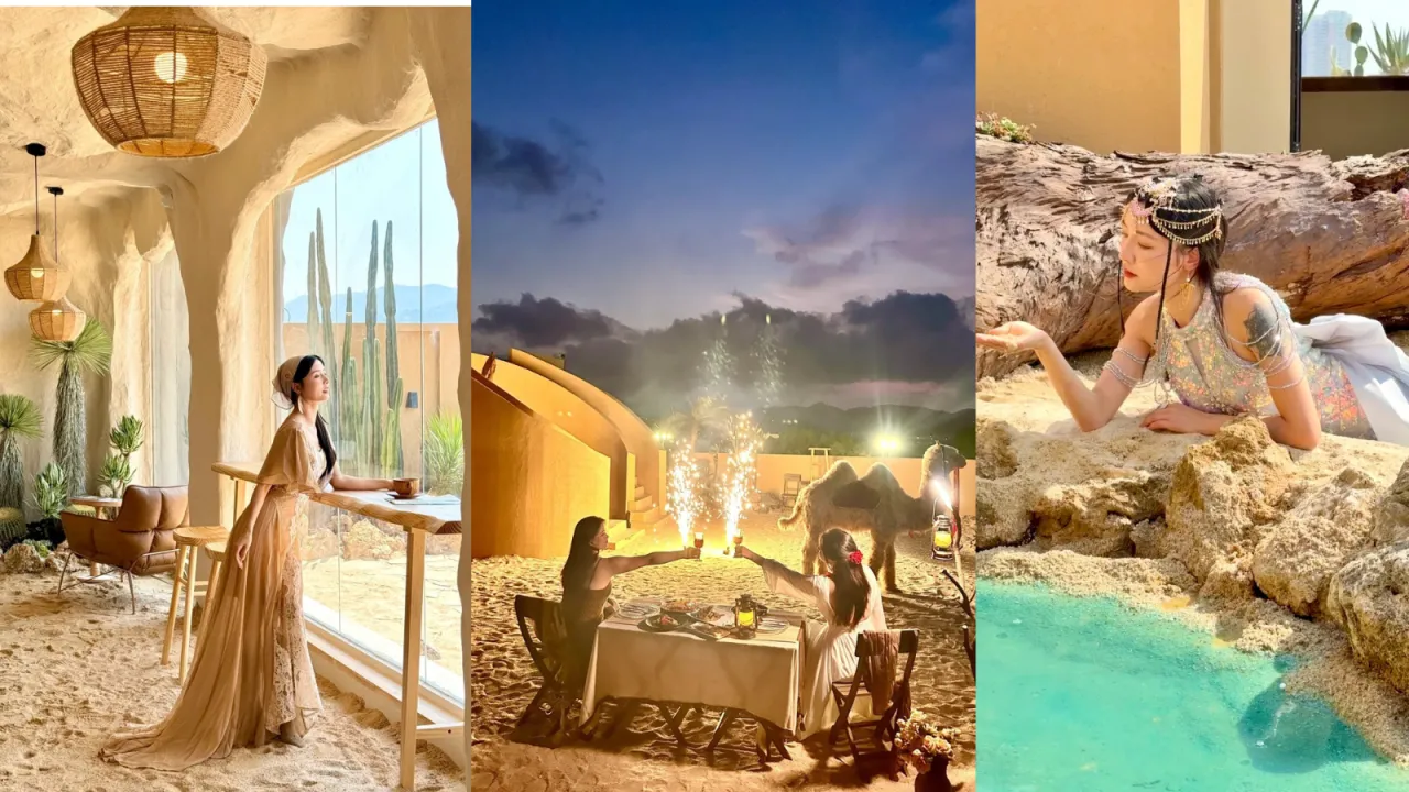 深圳打卡Cafe|深圳最近竟然有Cafe將整片沙漠搬到天台?位於深圳寶安區石岩的「漠上花開」參考摩洛哥風格,試業期間推出的優惠套餐更包含免費服裝租借,讓人體驗一秒穿越到異域沙漠般!