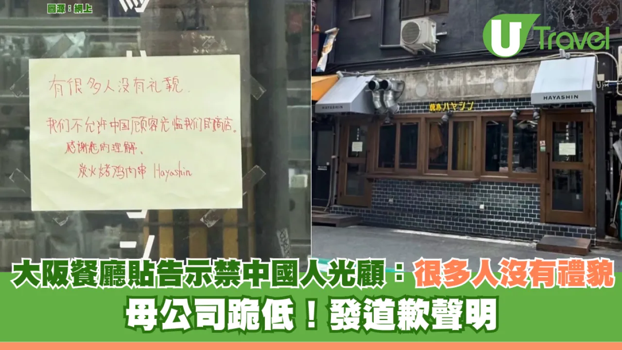 而隨著事件於網絡上引起的爭議愈演愈烈,餐廳母公司於5月12日以中日雙語發表道歉聲明,指該涉事中文告示是該店舖店長未經許可張貼,公司在發現後已即時移除,公司強調所有店舖都平等歡迎包括外籍遊客在內任何顧客。