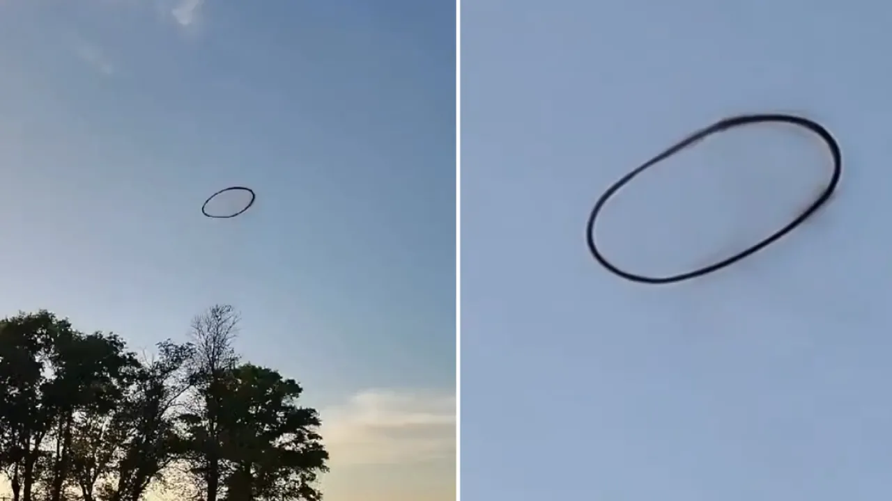 美國堪薩斯州(Kansas)上空日前驚現一個巨大、離奇的黑色圓環,狀似一個完美的煙圈,引起當地居民及網民熱議。專家其後解畫,指這很可能與地面上的爆炸有關,但其確切來源仍然是個謎。事發於當地時間周一下午,在Bonner Springs一條寂靜的街道上,電單車司機 Frankie Camren 正駕車經過時,留意到周遭車輛都減慢了速度。他抬頭一看,便赫然發現這個巨型黑色圓環懸浮在空中。