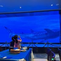 如果想來一頓氣氛滿分的正餐,海底餐廳絕對是首選。餐廳與鯨鯊館相連,邊吃飯邊欣賞成千上萬條魚類在水沖暢泳,是園區內唯一可以近距離觀賞海洋生物的用餐空間。