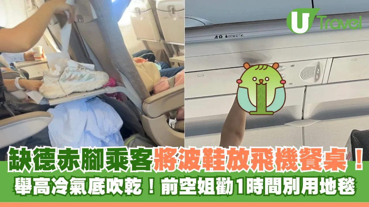 該名網民在小紅書上以「以後坐飛機別在小桌板吃飯囉!」為題發文,並附上三張在中國東方航空客機上拍攝的相片。相中可見,另一名乘客脫下運動鞋,並用機上提供的毛毯蓋住雙腳,並將其運動鞋放在餐桌上以紙巾清潔,隨後更舉高放到冷氣出風口下吹乾。目擊該畫面的網民直言該做法非常離譜,更笑言:「買不起頭等艙是我沒出息」。