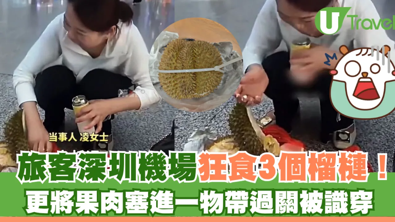 旅客搭飛機前要注意各地機場的違禁品,以免被沒收。近日深圳機場安檢發現有旅客企圖違規託運內藏3個榴槤的行李箱,結果旅客要即場把榴槤吃掉!
