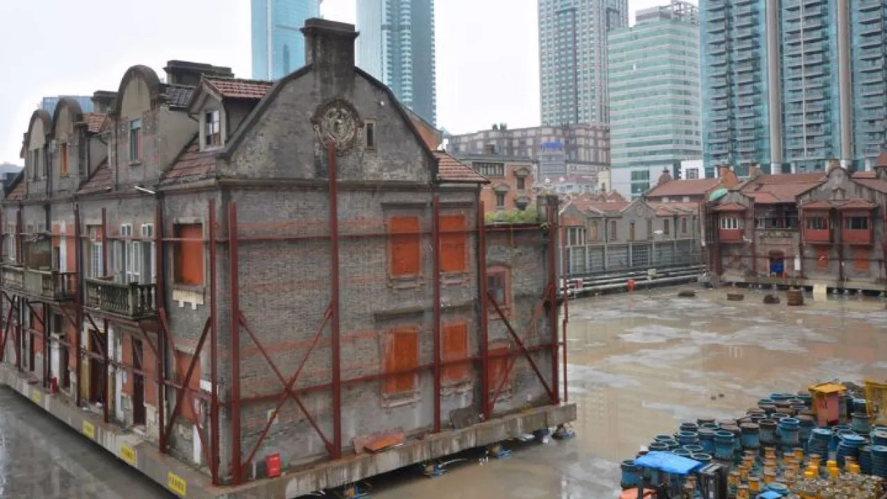 今年5月19日,上海張園石庫門建築群「華嚴里」進行了目前中國規模最大的組團式石庫門建築活化項目。432台機器人將約7500噸的石庫門建築抬起,「工作」了約3周,每天「行走」約10米把佔地4030平方米的石庫門建築搬回原處。
