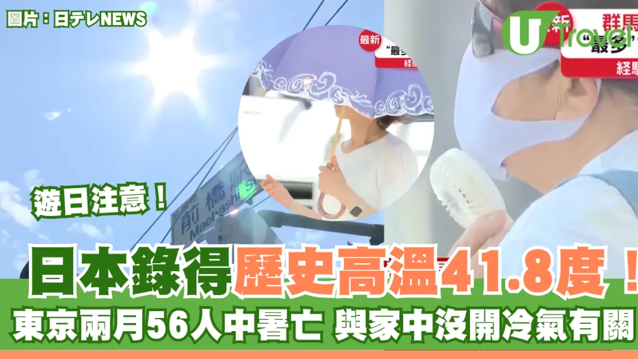 受到今年的酷熱天氣影響,東京都23區內由今年6至7月底,有56人疑因為中暑死亡。日本放送協會(NHK)在8月4日引用東京都監察醫務院的統計,由今年6月1日至7月底期間在東京都23區調查的死亡個案中,該批死者大多數為長者,70多歲佔26人,80多歲及60多歲分別佔16及10人。在這56人中,有54人是在家中中暑離世,當中超過3分2,即38人沒有開冷氣。