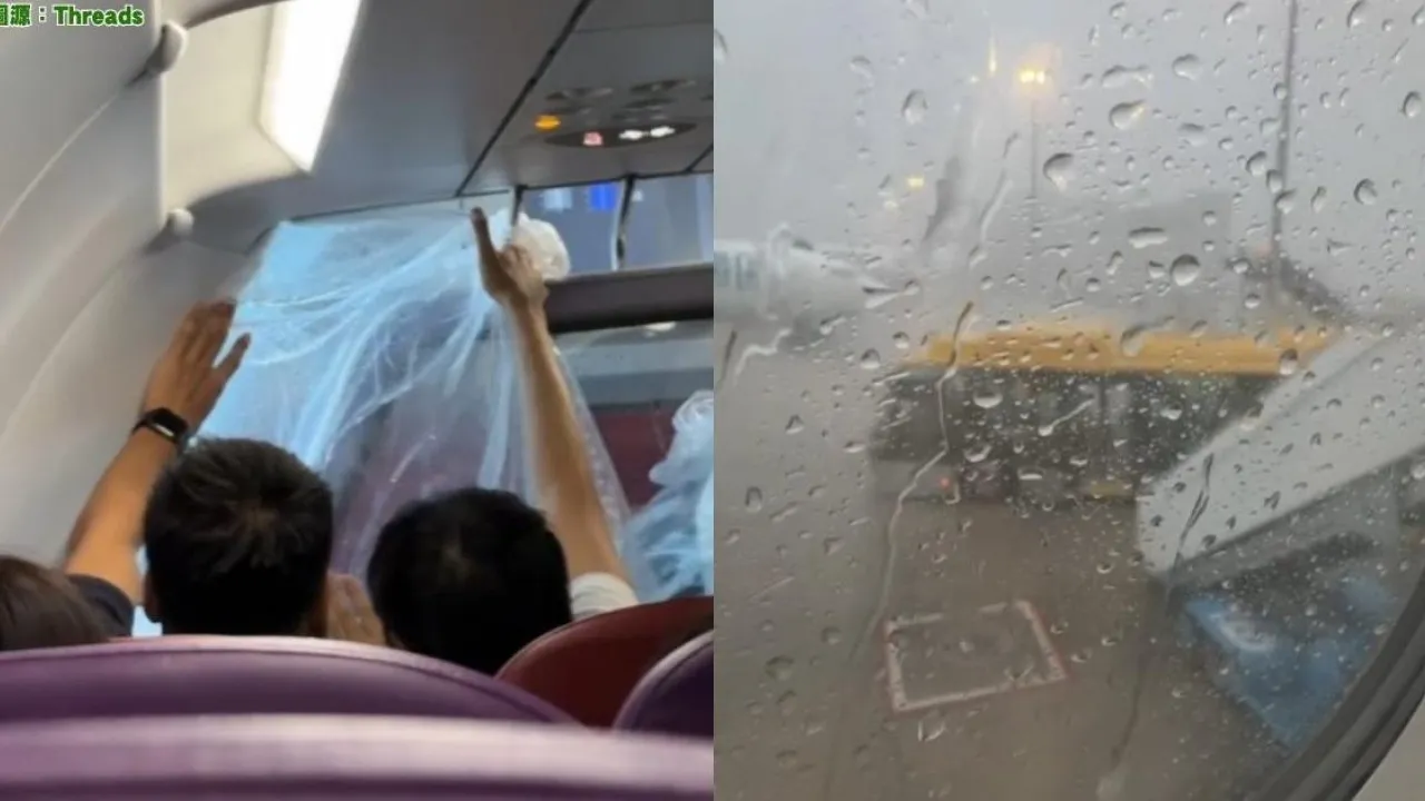 一名網民於社交媒體分享,在黑色暴雨警告下乘搭飛機時,機艙內部出現雨水飄入飛機的景象。從影片可見,雨水從艙門不斷飄入,前排乘客更需舉起雙手用膠布遮擋。事件引起網民熱議,更有網民笑言「旅程未開始已充滿驚險」。即睇內文了解詳情。