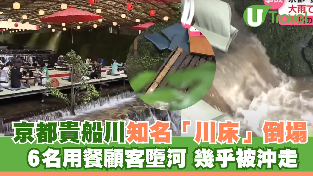 日本京都知名的觀光景點貴船川沿岸一間以「川床料理」聞名的餐廳驚傳意外。由於連日暴雨導致溪水暴漲,搭建在河川上的川床突然坍塌,造成6名用餐顧客墮河。