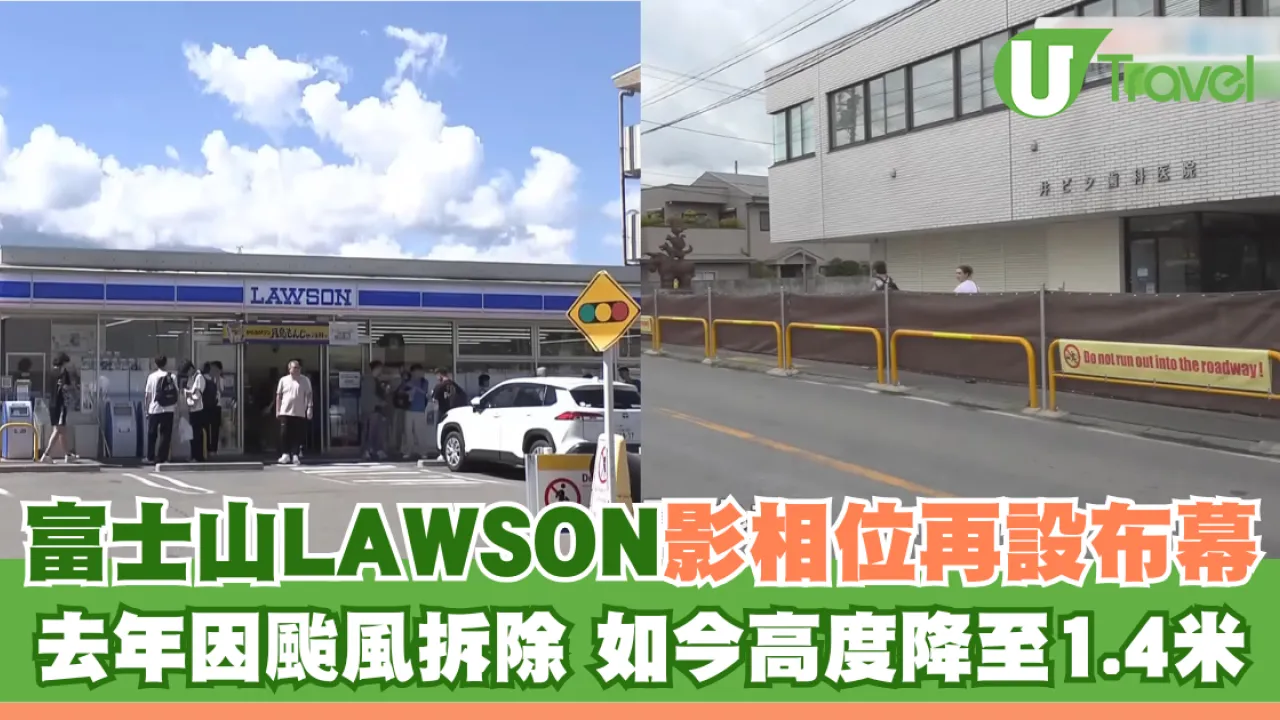 日本河口湖町,有間LAWSON因可拍到「富士山與便利店」的獨特畫面,意外成為全球旅客的熱門打卡點。不過,大量遊客為了拍照不顧交通安全,任意穿越馬路,嚴重影響當地居民生活。為此,當地政府去年曾設置巨型黑幕,試圖改善情況,後來因颱風拆除。近日,當局決定再次出招,重新設置布幕,但這次的高度則降至1.4米。
