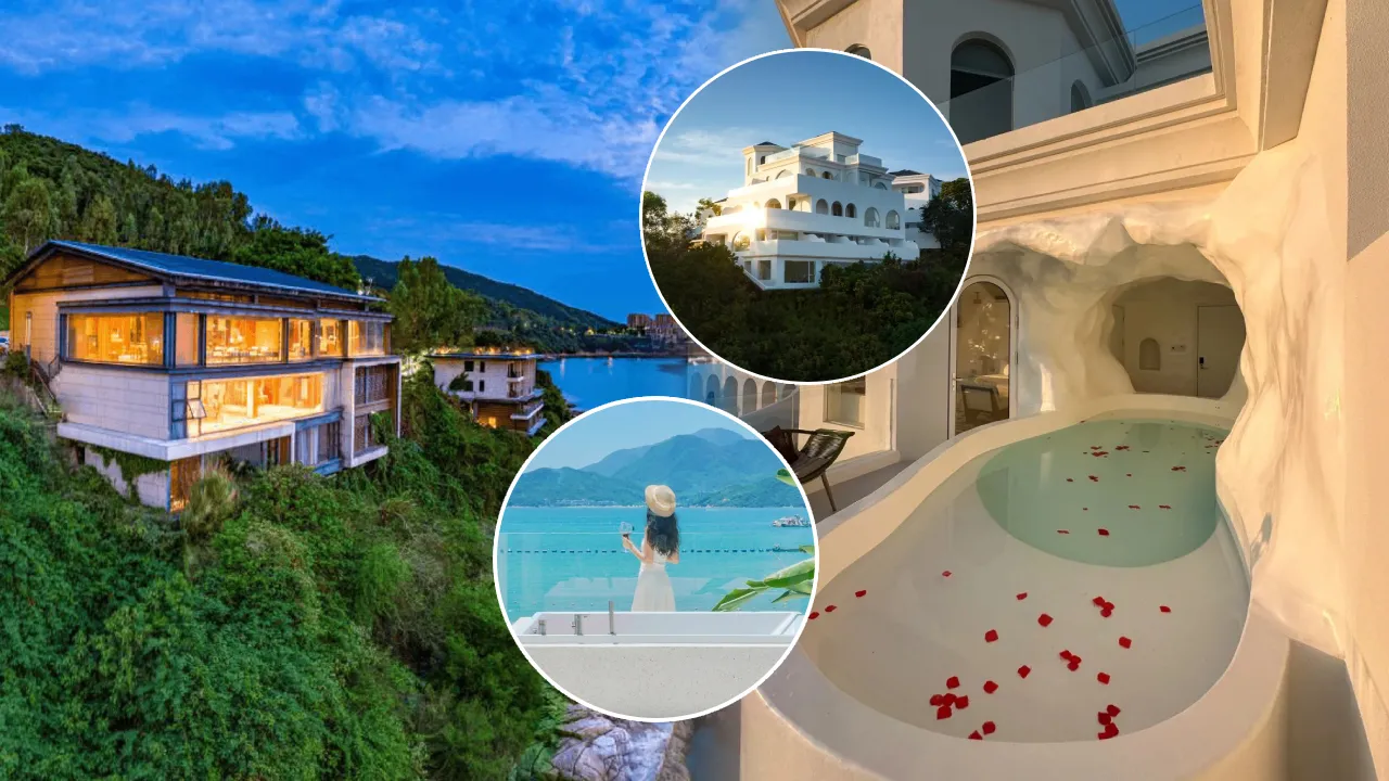 相信大家喺社交媒體上都一定有見過呢個藍磚白牆嘅希臘風建築。一棟又一棟聖托里尼優雅風嘅白房子,又稱「東方小夏威夷」,原來就係呢間懸崖海景酒店!就好似佢個名咁,建築層層遞進嘅感覺好似置身於懸崖一樣。房間可以270度飽覽南澳灣大片海景,當中仲有洞穴浴池海景房,可以打卡被泂穴框住嘅南澳灣唯美日落,浪漫到好似一幅畫咁!